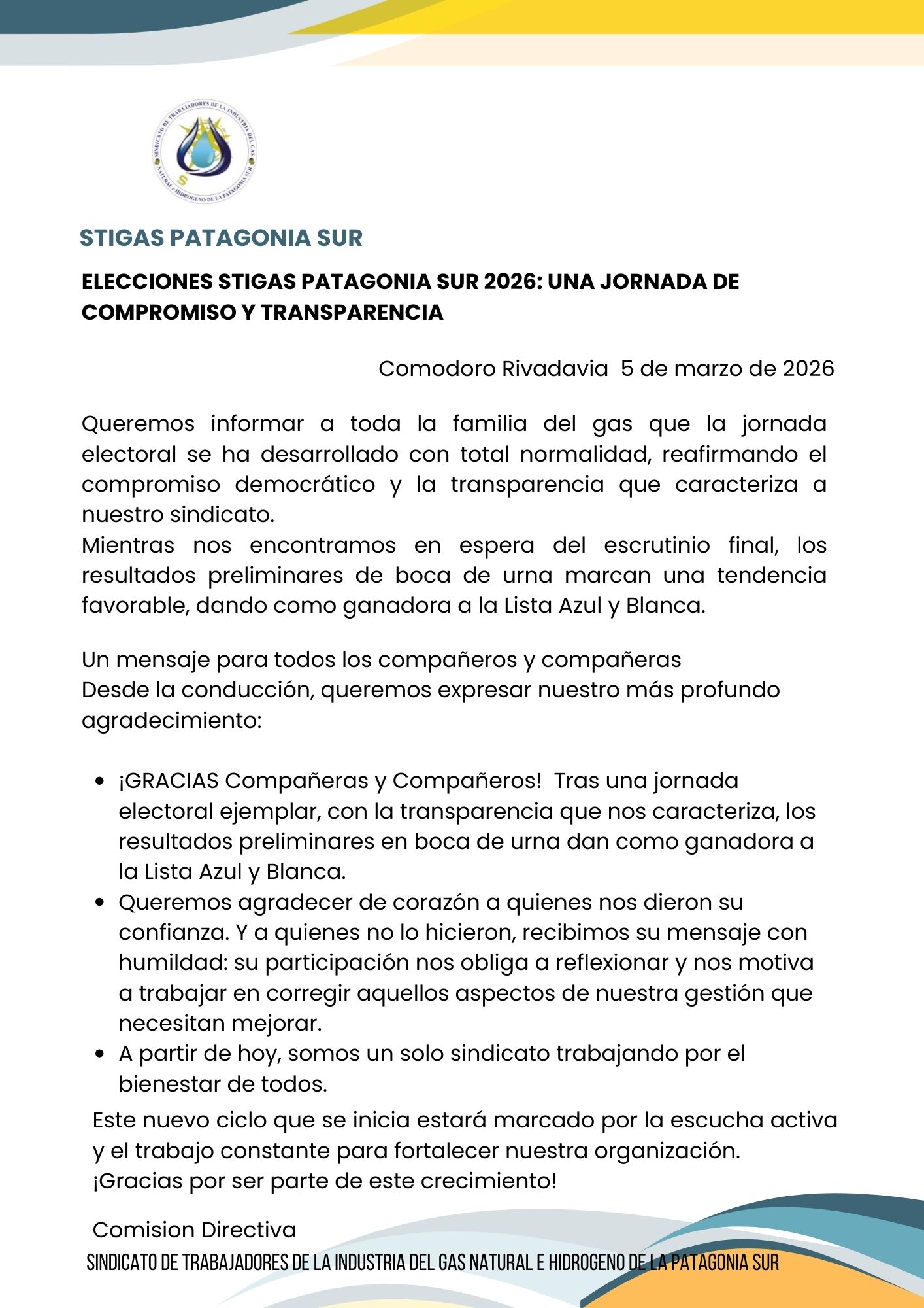 Home/Notas/ELECCIONES C.D STIGAS PATAGONIA SUR 2026: Notas ELECCIONES C.D STIGAS PATAGONIA SUR 2026: UNA JORNADA DE COMPROMISO Y TRANSPARENCIA STIGAS Patagonia Sur Unidad, Solidaridad y Lucha.