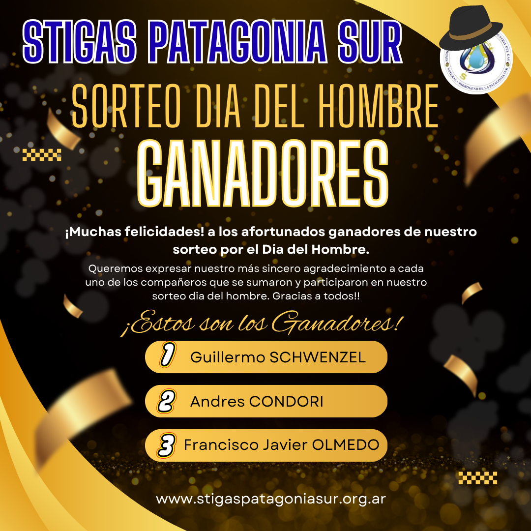 Desde el Sindicato de Trabajadores de la Industria del Gas Natural e Hidrógeno de la Patagonia Sur, nos complace enormemente anunciar a los afortunados ganadores de nuestro sorteo especial con motivo del Día del Hombre.