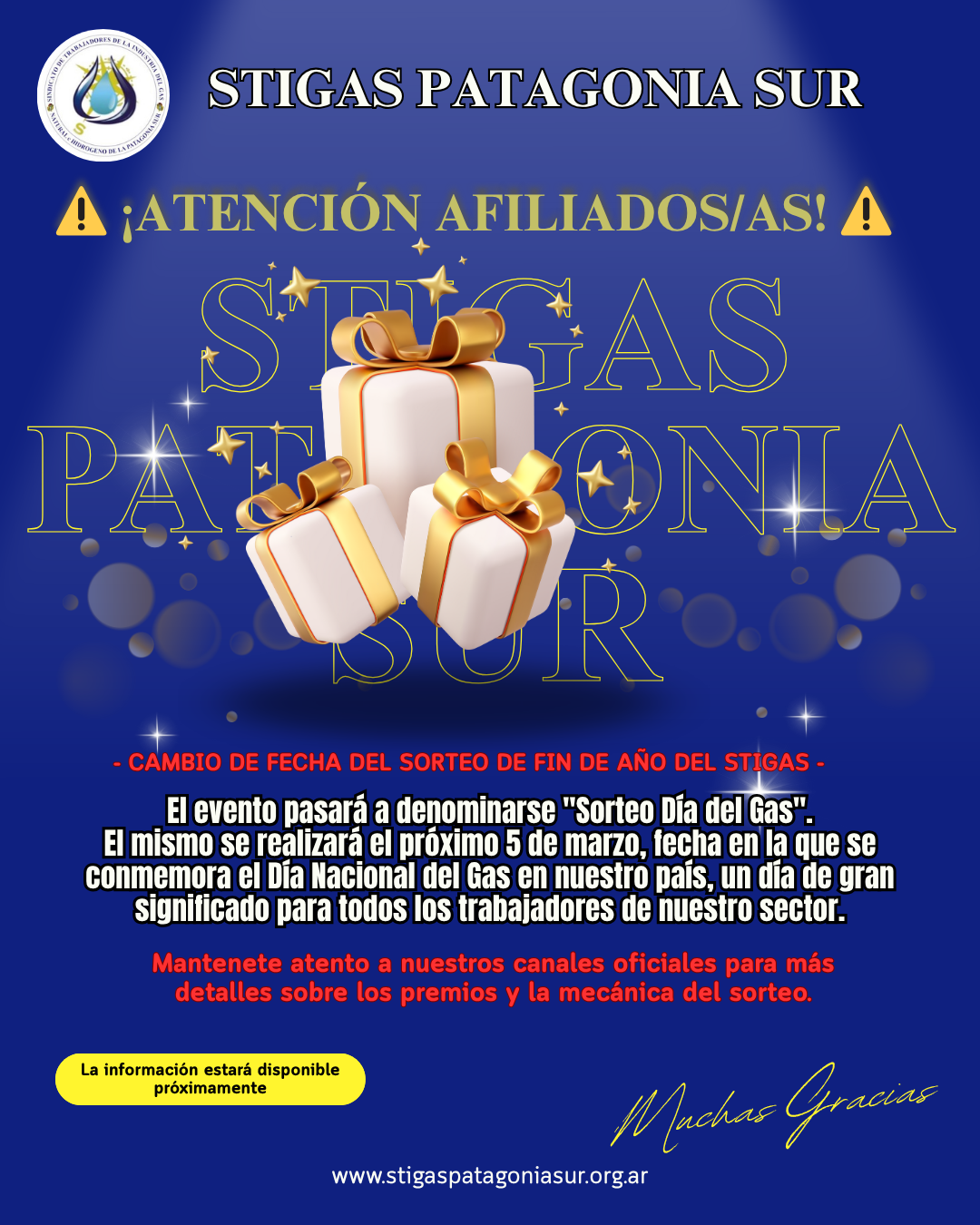 Home/Notas/INFORMACION IMPORTANTE Notas INFORMACION IMPORTANTE Nueva fecha de sorteo para el tradicional sorteo de fin de año del Sindicato de Gas Patagonia Sur STIGas Patagonia Sur