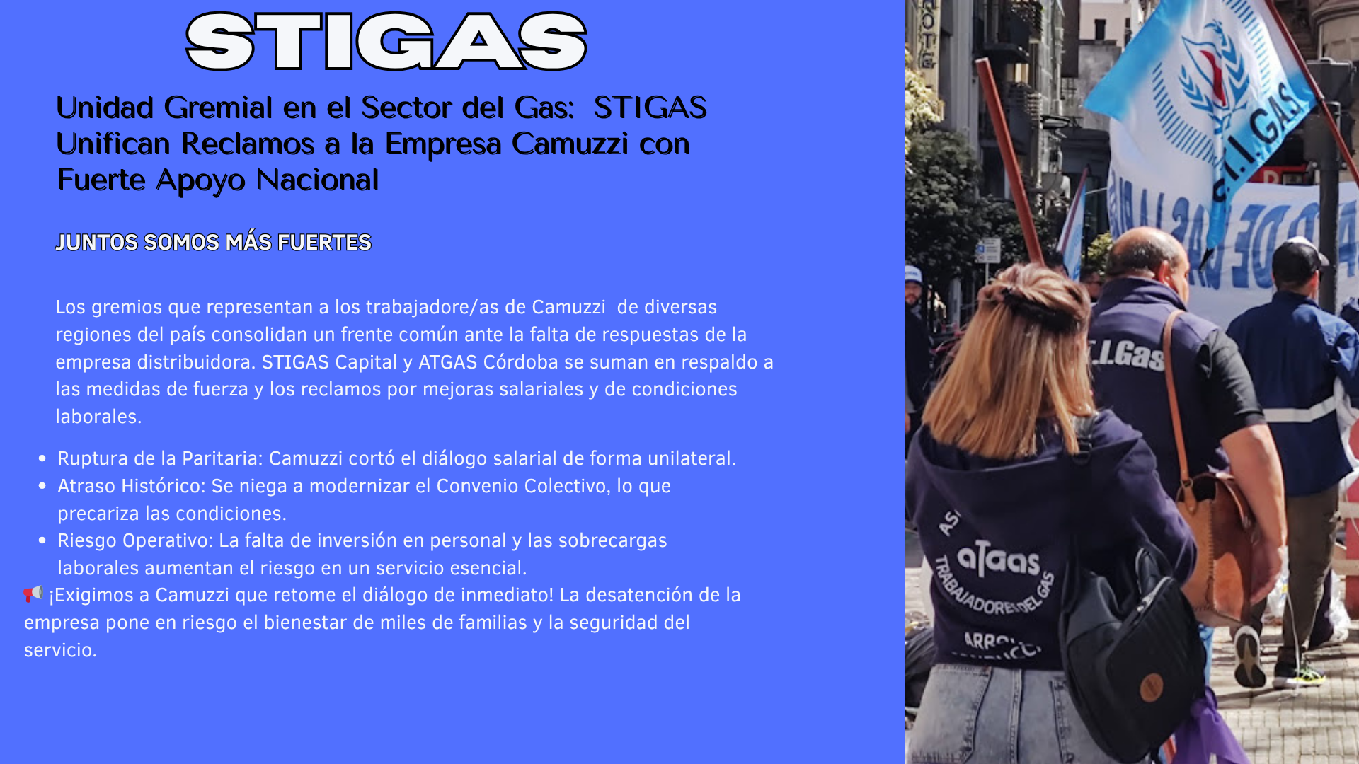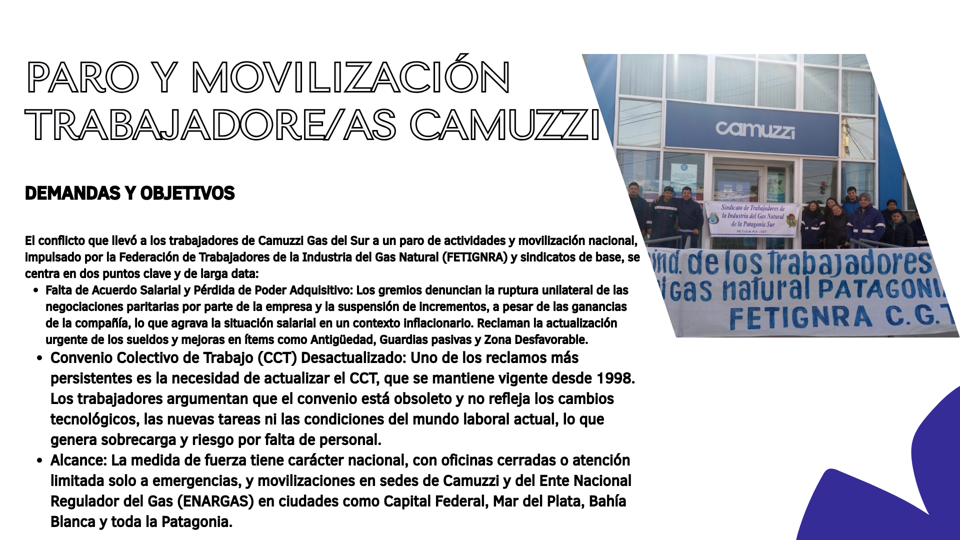 Tras la contundente movilización y el paro nacional, donde los trabajadores demostramos nuestra unidad y firmeza en los reclamos por la actualización del Convenio Colectivo (CCT 1998) y una recomposición salarial real, la respuesta de Camuzzi es una provocación directa.